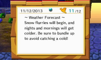 Yay! I'm looking forward to snow in New Leaf! I always loved bundling my character up in Wild World to face the blustery Animal Crossing winters. ;)